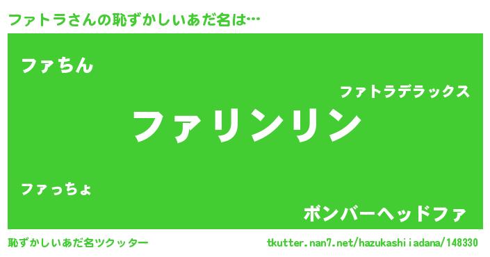 | ヘコむあだ名 | 『ファお』『ファトラ(笑)』 |