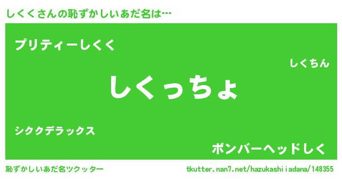 | ヘコむあだ名 | 『豆乳』『しくにゅー』『しくく(笑)』 |