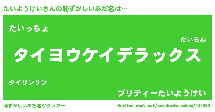 | 肩書あだ名 | 『たいようけい中将』『たいようけい総統』 |