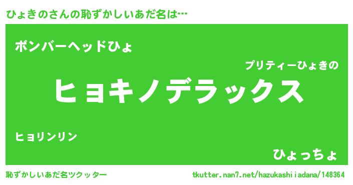 | ヒーロー風カッコイイあだ名 | 『超時空戦士ヒョキノ』『仮面ヒョダー』 |