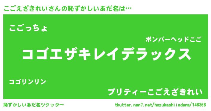 | ヘコむあだ名 | 『なまこ酢』『こごっふぃ~』 |