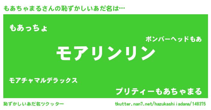 | 女子向けラノベタイトル風あだ名 | 『もあちゃまるは平凡を望む』 |