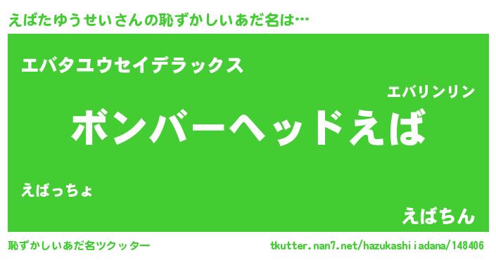 | 男性向けラノベタイトル風あだ名 | 『おまえをオタクにしてやるから、俺をえばたゆうせいにしてくれ! 』 |
