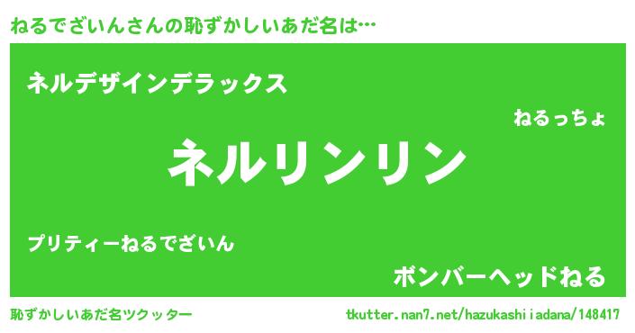 | 意味不明あだ名 | 『とにかく怪しいねるでざいん』 |