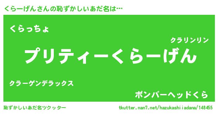 | ヒーロー風カッコイイあだ名 | 『スーパークラーゲン』『魔戒騎士クラ』 |