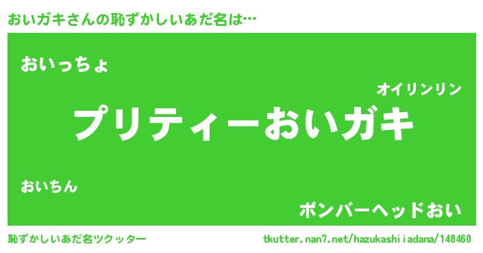 | 男性向けラノベタイトル風あだ名 | 『おいガキの憂鬱』『魔弾の王とおいガキ』 |
