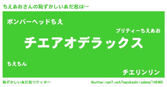 | 意味不明あだ名 | 『自称ちえあお』『たけのこ科ちえあお属』 |