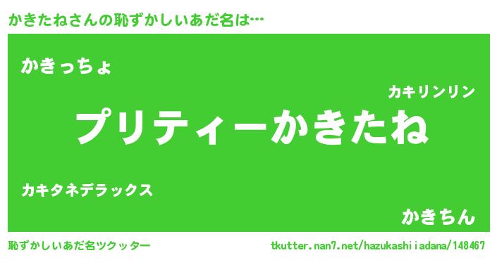 | 男性向けラノベタイトル風あだ名 | 『かきたねの憂鬱』『カキタネスレイヤー』 |