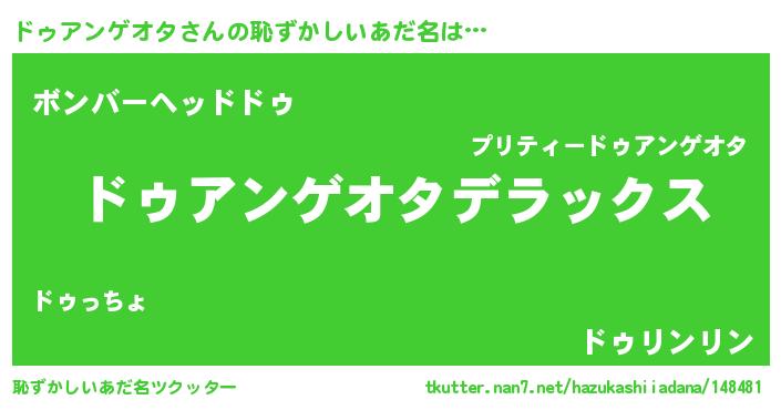 | 料理風あだ名 | 『ドゥアンゲオタのカルパッチョ風』 |