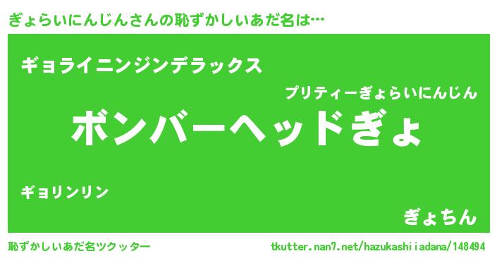 | ヒーロー風カッコイイあだ名 | 『仮面ギョダー』『ネオギョライニンジン』 |
