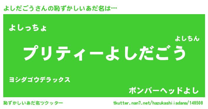 | 女子向けラノベタイトル風あだ名 | 『よしだごうの玉の輿計画!』 |