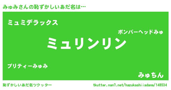 | 意味不明あだ名 | 『とにかく怪しいみゅみ』『自称みゅみ』 |