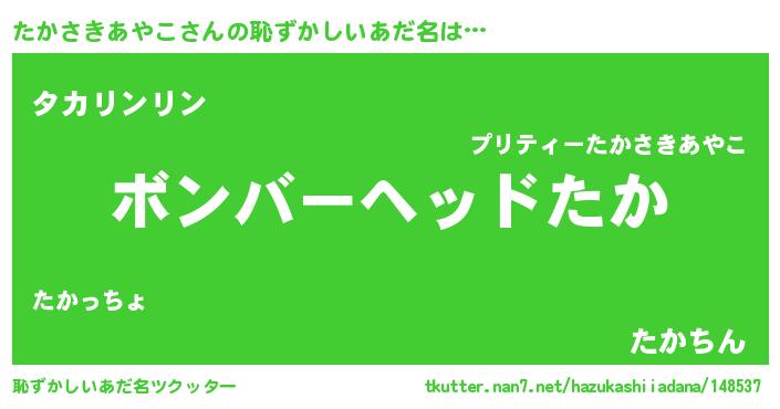 | ヘコむあだ名 | 『たかお』『たかさきあやこ(小並感)』 |