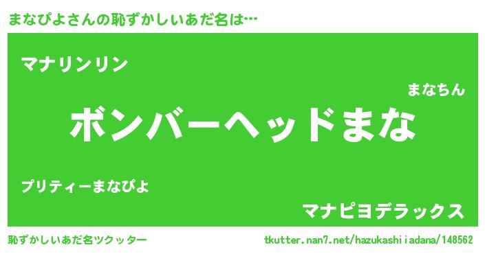 | ヘコむあだ名 | 『まな太郎』『まなぴよ(笑)』『豆乳』 |