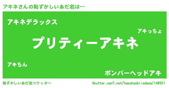 | 意味不明あだ名 | 『ペロリンアキネ』『自称アキネ』 |