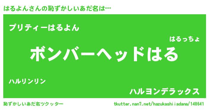 | ヘコむあだ名 | 『はるっふぃ~』『牛乳』『はるっぺ』 |