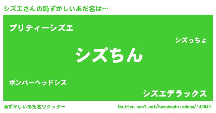 | ヘコむあだ名 | 『シズエ(笑)』『シズもー』『シズを』 |