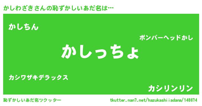 | 男性向けラノベタイトル風あだ名 | 『カシワザキスレイヤー』 |