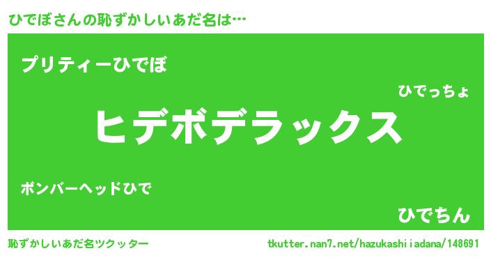 | 意味不明あだ名 | 『自称ひでぼ』『住所不定無職ひでぼ(5歳)』 |