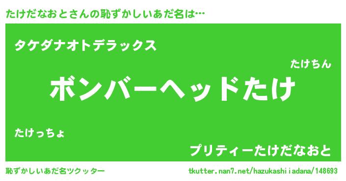 | ヘコむあだ名 | 『たけっふぃ~』『たけだなおと(笑)』 |