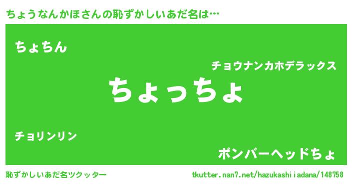 | 欧米人風あだ名 | 『ちょうなんかほクリステル』 |