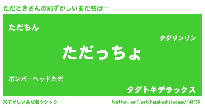 | 意味不明あだ名 | 『ただときフォーエバー』『自称ただとき』 |