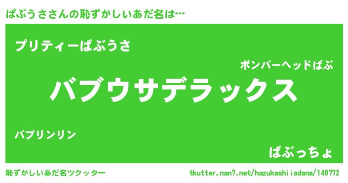 | 女子向けラノベタイトル風あだ名 | 『ばぶうさアンティーク』 |