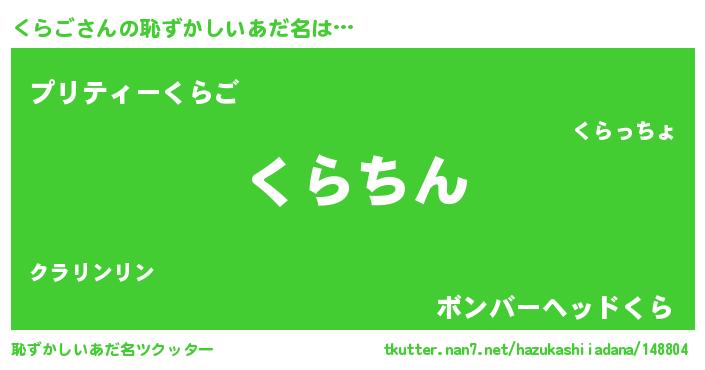 | 男性向けラノベタイトル風あだ名 | 『くらごという概念が存在しない退屈な世界 』 |