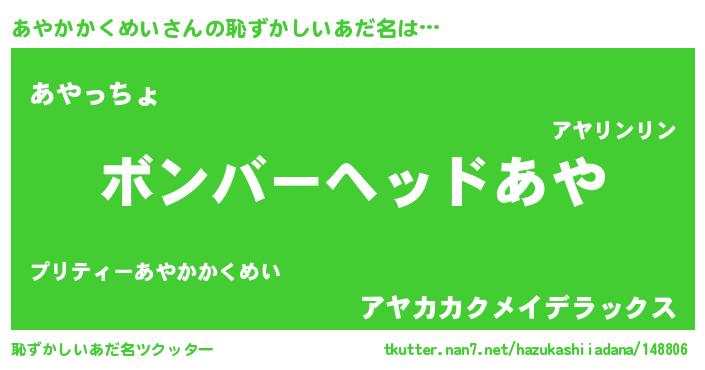 | 女子向けラノベタイトル風あだ名 | 『あやかかくめい恋絵巻』 |