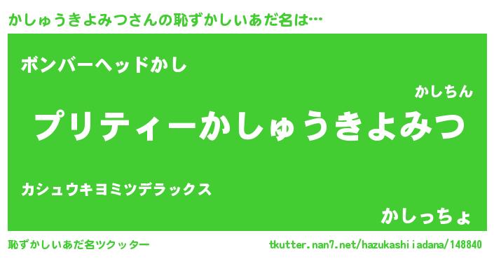 | 胡散臭い通販商品みたいなあだ名 | 『億万長者になれるブレスレット…その名も「かしゅうきよみつ」』 |
