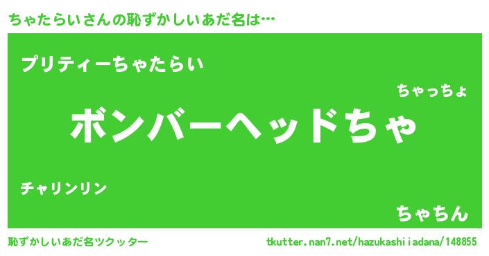 | ヘコむあだ名 | 『ちゃっふぃ~』『ちゃたらい(震え声)』 |