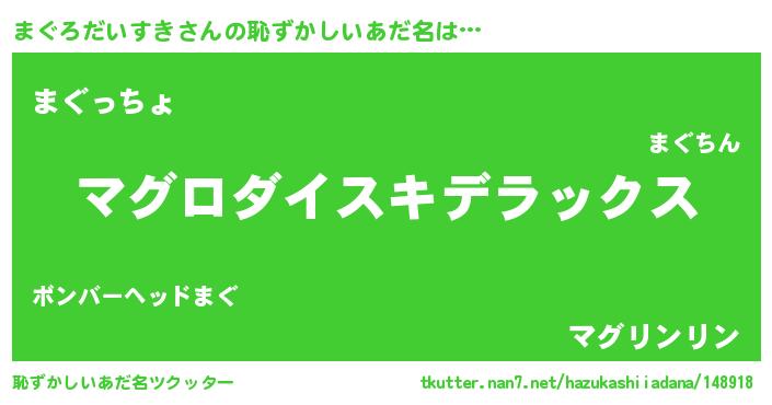 | 意味不明あだ名 | 『自称まぐろだいすき』 |