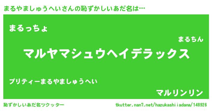 | 男性向けラノベタイトル風あだ名 | 『冴えないまるやましゅうへいの育てかた』 |