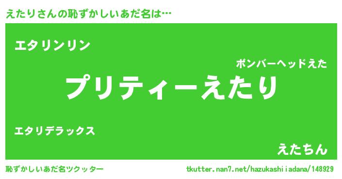 | ヒーロー風カッコイイあだ名 | 『スーパーエタリ』『暗黒騎士エタ』 |