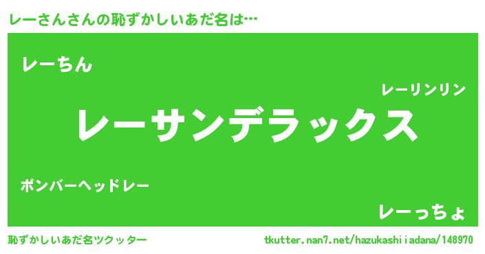 | 意味不明あだ名 | 『自称レーさん』『永久保存レーさん』 |