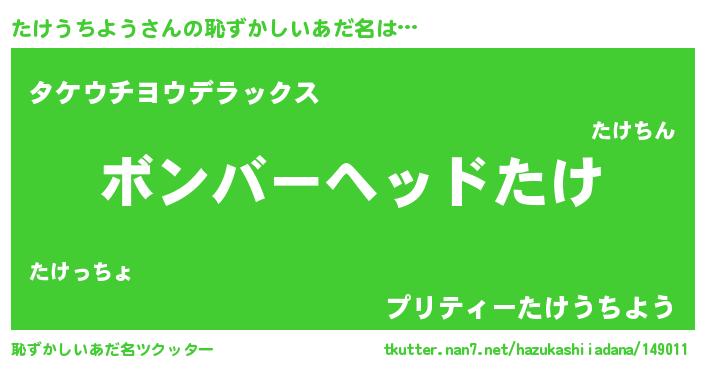 | ヘコむあだ名 | 『たけっふぃ~』『たけうちよう(震え声)』 |