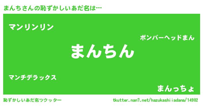 | 女子向けラノベタイトル風あだ名 | 『まんちの契約王妃』『死神まんちの再婚』 |