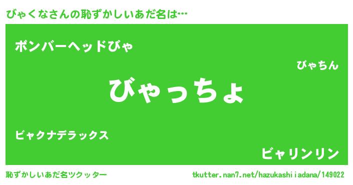 | ヒーロー風カッコイイあだ名 | 『仮面ビャダー』『ウルトラびゃくなマン』 |