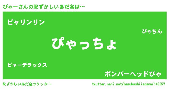 | 意味不明あだ名 | 『ぴゃーフォーエバー』『永久保存ぴゃー』 |
