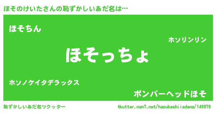 | ヘコむあだ名 | 『つくし』『ほそのけいた(爆)』 |