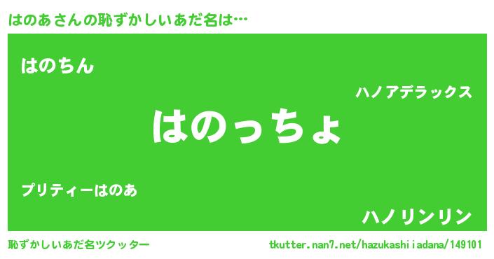 | 欧米人風あだ名 | 『はのあクリステル』『ウサインはのあ』 |