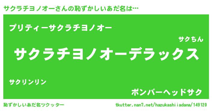 | ヒーロー風カッコイイあだ名 | 『サイバー戦士サクラチヨノオー』 |