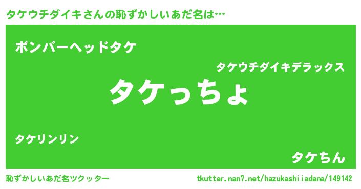 | 肩書あだ名 | 『タケウチダイキ大統領』 |