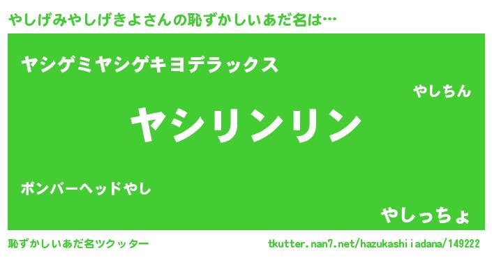 | 意味不明あだ名 | 『とにかく怪しいやしげみやしげきよ』 |