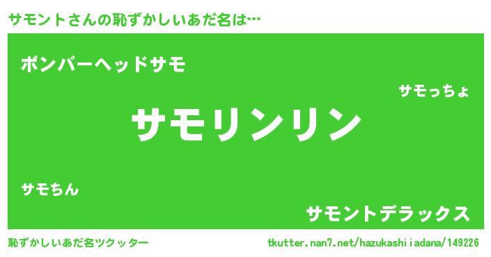 | 意味不明あだ名 | 『なめこ科サモント属』『自称サモント』 |