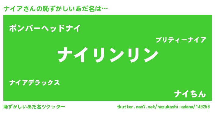 | ヒーロー風カッコイイあだ名 | 『炎刃騎士ナイ』『正義の使者ナイア』 |