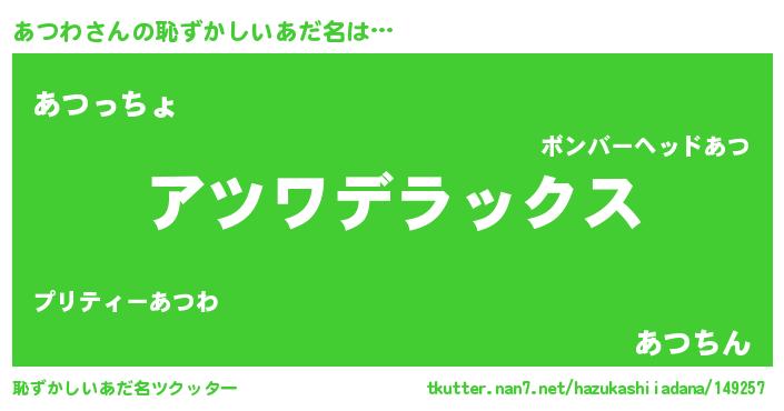| 意味不明あだ名 | 『自称あつわ』『あつわフォーエバー』 |