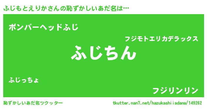 | ヘコむあだ名 | 『ふじもとえりか(遠い目)』『ふじぷりん』 |