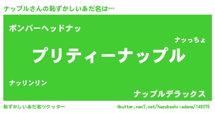 | 意味不明あだ名 | 『ペロリンナップル』『自称ナップル』 |