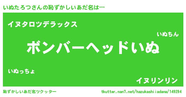 | ヘコむあだ名 | 『いぬっぺ』『いぬたろつ(震え声)』 |